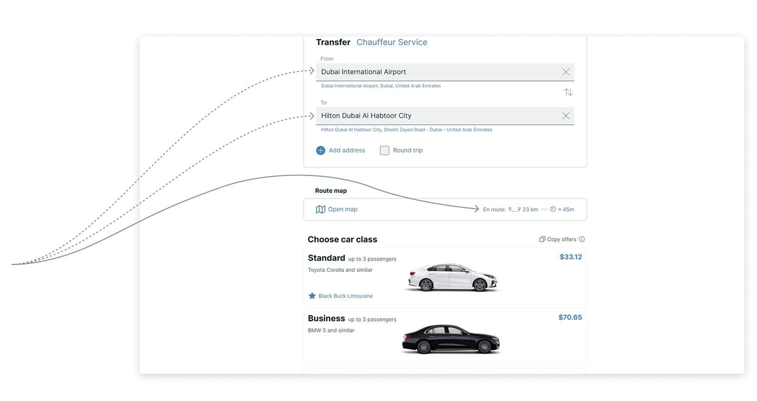 1 Meet and greet is a paid option, which can be selected during the booking process. The text of a greeting sign can be customized.